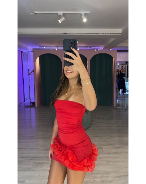 Vestido coleção hemera, tecido com elastano, com forro busto, detalhes em organza.