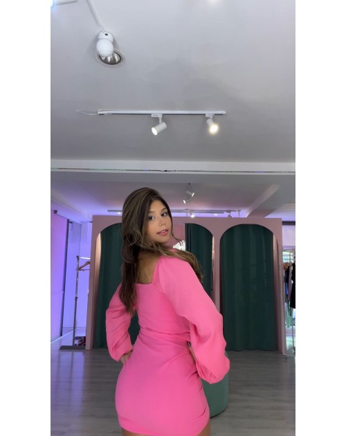 Vestido coleção hemera, tecido com elastano, forro no busto, mangas bufantes.
