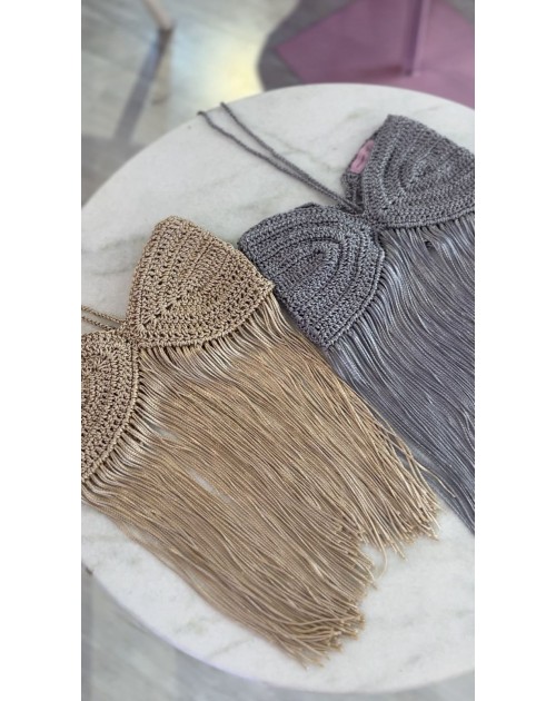 Detalhe frontal com franjas longas