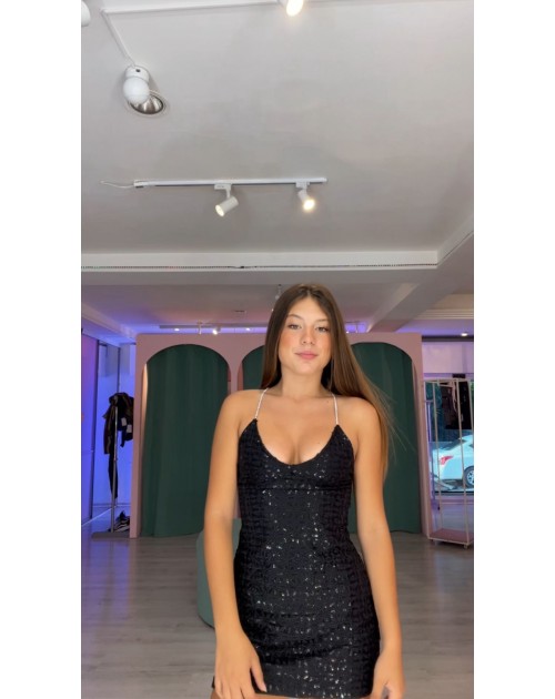 Vestido coleção hemera, tecido bordado paetê com elastano, costas cruzada alça brilho.